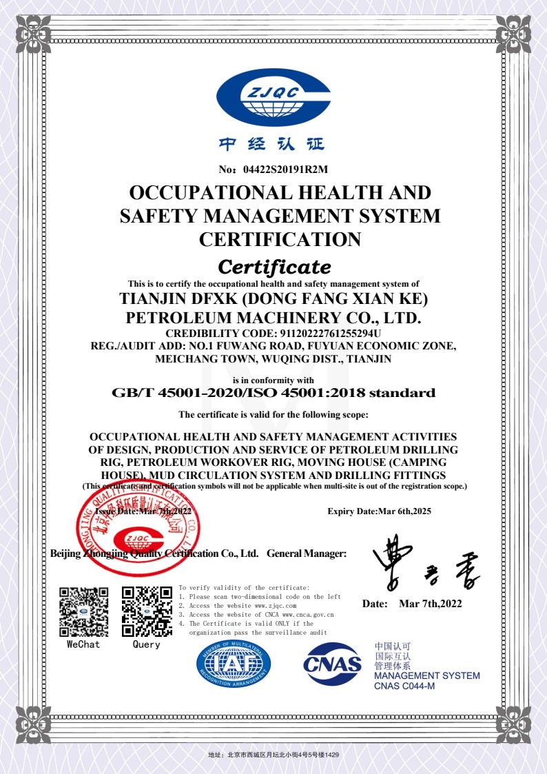 職業(yè)健康安全管理體系認證證書英文